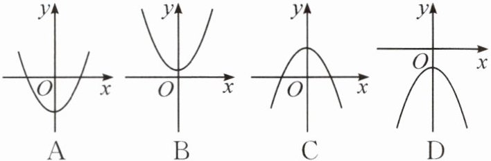 1. 若正比例函数 $ y = mx(m \neq 0) $,$ y $ 随 $ x $ 的增大而减小,则二次函数 $ y = mx^2 + m $ 的图象大致是 (