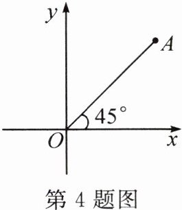 4. 如图,在平面直角坐标系中,线段 $ OA $ 与 $ x $ 轴正方向的夹角为 $ 45^{\circ} $,且 $ OA = 2 $。若将线段 $ OA $ 绕点 $ O $ 逆时针旋转 $ 105^{\circ} $ 得到线段 $ OA' $,则此时点 $ A' $ 的坐标为(
