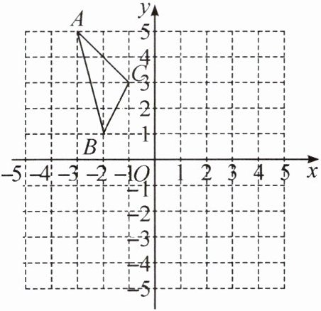 5. 如图,在平面直角坐标系中,已知 $ \triangle ABC $ 的三个顶点的坐标分别为 $ A(-3,5) $,$ B(-2,1) $,$ C(-1,3) $。