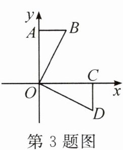 3. (2024·自贡)如图,在平面直角坐标系中,$ D(4,-2) $,将 $ Rt\triangle OCD $ 绕点 $ O $ 逆时针旋转 $ 90^{\circ} $ 到 $ \triangle OAB $ 的位置,则点 $ B $ 的坐标为(