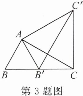 3. (2023·黔东南期中)如图,在 $Rt\triangle ABC$ 中,$\angle BAC = 90^{\circ}$,$AB = 3\ cm$,$\angle B = 60^{\circ}$,将 $\triangle ABC$ 绕点 $A$ 逆时针旋转,得到 $\triangle AB'C'$。若点 $B$ 的对应点 $B'$ 恰好落在线段 $BC$ 上,则线段 $CC'$ 的长为(