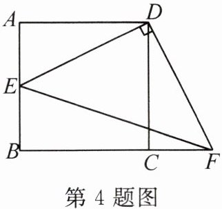 4. (2023·益阳)如图,在正方形 $ABCD$ 中,$AB = 4$,$E$ 为 $AB$ 的中点,连接 $DE$,将 $\triangle DAE$ 绕点 $D$ 逆时针旋转 $90^{\circ}$ 得到 $\triangle DCF$,连接 $EF$,则 $EF$ 的长为