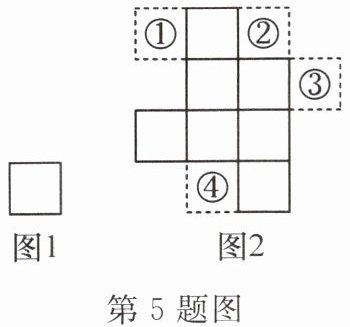 5. 图 $1$ 和图 $2$ 中所有的小正方形都全等,将图 $1$ 的正方形放在图 $2$ 中①②③④的某一位置,使它与原来 $7$ 个小正方形组成的图形是中心对称图形,这个位置是