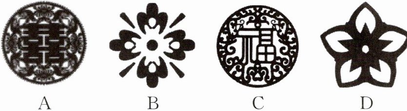 1. 新考向 地域文化 (2024·黔东南从江县模拟)贵州省剑河县传统美术剪纸(苗族剪纸)是国家级非物质文化遗产之一.下列剪纸图中,是中心对称图形的是 (