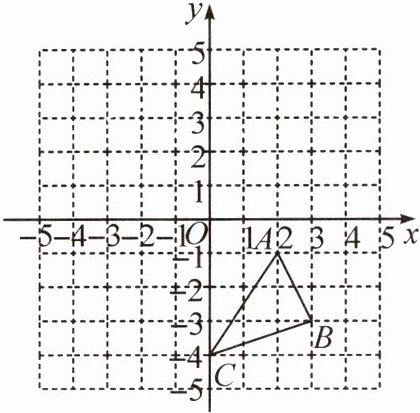 10. (教材九上 $P70$ 习题 $T3$ 变式)如图,在平面直角坐标系中,$\triangle ABC$ 三个顶点的坐标分别为 $A(2,-1)$,$B(3,-3)$,$C(0,-4)$。