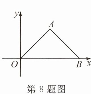 8. 将等腰直角三角形 $AOB$ 按如图所示的方式放置,若 $OB = 2$,则点 $A$ 关于原点对称的点的坐标为