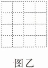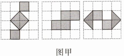 (2)请在图乙中设计出一个面积为4,且具备上述特征的图案,要求所画图案不能与图甲中给出的图案相同。