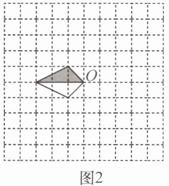 (2)图2所示的是某设计师设计图案的一部分,请你运用旋转变换的方法,在方格纸中将图形绕点O顺时针依次旋转$90^{\circ}$,$180^{\circ}$,$270^{\circ}$,依次画出旋转后所得到的图形,你会得到一个美丽的图案,但涂阴影时不要涂错了位置,否则不会出现理想的效果,你来试一试吧!