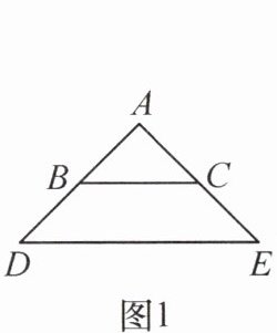 1. 【问题情境】如图 1,△ABC 和△ADE 都是等腰直角三角形,∠BAC = ∠DAE = 90°,点 B 在线段 AD 上,点 C 在线段 AE 上,我们很容易得到 BD = CE(不需证明)。