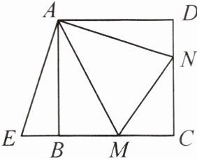 2. (2023·黔南期末)如图,点 M,N 分别在正方形 ABCD 的边 BC,CD 上,且∠MAN = 45°。把△ADN 绕点 A 顺时针旋转 90°得到△ABE。
