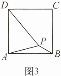 (2)如图 3,在正方形 ABCD 内有一点 P,且 PA = 2√2,PB = 1,PD = √17,求∠APB 的度数以及正方形 ABCD 的边长。