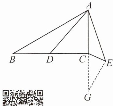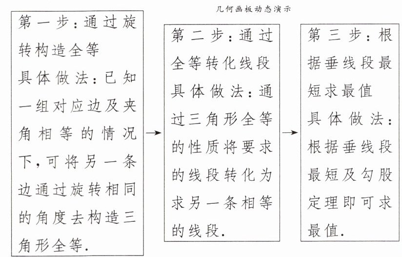 。解法 2:在射线 AC 上截取 AG = AB,易证△ABD ≌ △AGE(SAS)。则∠B = ∠G = 30°,从而点 E 在直线 GA 绕点 G 顺时针旋转 30°得到的直线上运动,则由垂线段最短可得,当∠CEG =