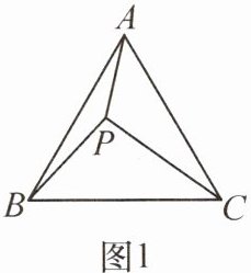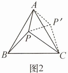 小伟是这样思考的:如图 2,利用旋转和全等的知识构造△AP'C,连接 PP',得到两个特殊的三角形,从而将问题解决。