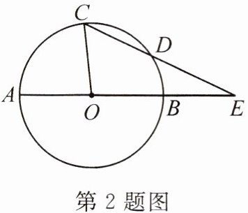 2. 如图,$ \odot O $的直径 AB 与弦 CD 的延长线交于点 E . 若 DE = OB ,$ \angle AOC = 84^{\circ} ,$则$ \angle E = $