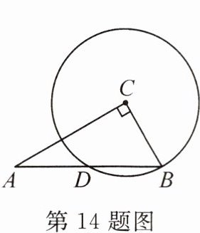 14. 如图,在$ Rt \triangle ABC $中,$\angle C = 90^{\circ} ,$ AB = 10 . 若以点 C 为圆心, CB 的长为半径的圆恰好经过 AB 的中点 D ,则 AC =
