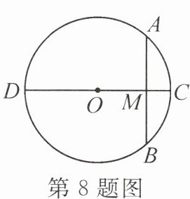 8. 如图所示,⊙O的直径CD=6 cm,AB是⊙O的弦,AM=BM,OM:OC=2:3,则AB的长为