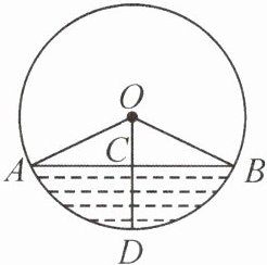 9. 新考向 真实情境 如图,这是一种用于液体蒸馏或分馏物质的玻璃容器——蒸馏瓶,其底都是圆球形. 球的半径为5 cm,瓶内液体的最大深度CD=3 cm,则截面圆中弦AB的长为