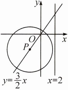 17. 如图,$ P $ 为正比例函数 $ y = \frac{3}{2}x $ 图象上的一个动点,$ \odot P $ 的半径为 $ 3 $,设 $ P(x, y) $。