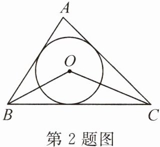 2. 如图,点O是△ABC的内切圆的圆心.若∠A=80°,则∠BOC的度数为