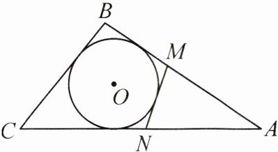 5. 如图,△ABC的周长为20cm,BC=6cm,⊙O是△ABC的内切圆,⊙O的切线MN分别与AB,CA相交于点M,N,则△AMN的周长为