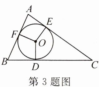 3. 【方程思想】(教材九上P100例2变式)如图,△ABC的内切圆⊙O与BC,CA,AB分别相切于点D,E,F,且AB=18,BC=28,CA=26,则AF的长为