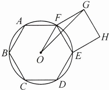 10. 如图,$\odot O$ 的半径为 $R$,六边形 $ABCDEF$ 是圆内接正六边形,四边形 $EFGH$ 是正方形.