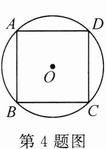 4. 如图,已知 $\odot O$ 的内接正方形 $ABCD$ 的边长为 1,则 $\odot O$ 的半径为(