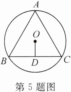 5. 如图,$\odot O$ 的内接正三角形 $ABC$ 的边心距 $OD$ 为 $2\mathrm{cm}$,则 $\odot O$ 的半径为