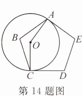 14. (2021·贵阳)如图,$\odot O$ 与正五边形 $ABCDE$ 的两边 $AE$,$CD$ 分别相切于 $A$,$C$ 两点,则 $\angle AOC$ 的度数是(