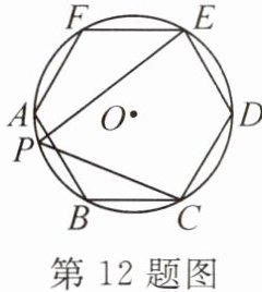 12. (2024·黔南一模)如图,正六边形 $ABCDEF$ 内接于 $\odot O$,$P$ 为 $\overset{\frown}{AB}$ 上的一点(点 $P$ 不与点 $A$,$B$ 重合),则 $\angle CPE$ 的度数为(