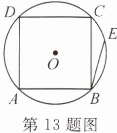 13. 如图,正方形 $ABCD$ 内接于 $\odot O$,$E$ 为 $\overset{\frown}{BC}$ 上一点,连接 $BE$.若 $\angle CBE = 15°$,$BE = 5$,则正方形 $ABCD$ 的边长为(