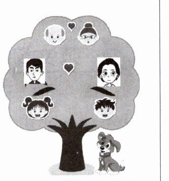 The old man and the old woman are my grandparents. They're always kind to us. The young man on the left is my father. He is very funny and he always makes us laugh. He can play the erhu very well. The woman on the right is my mother. She is beautiful. She likes gardening. Next to me is my brother,Jim. He is tall and clever. We are different but we have a lot of fun together. There is a lovely dog,and his name is Coco.