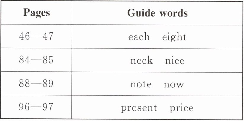 On which page would you find these words? Write down the possible page number ranges(写出可能的页码范围) for the following words.