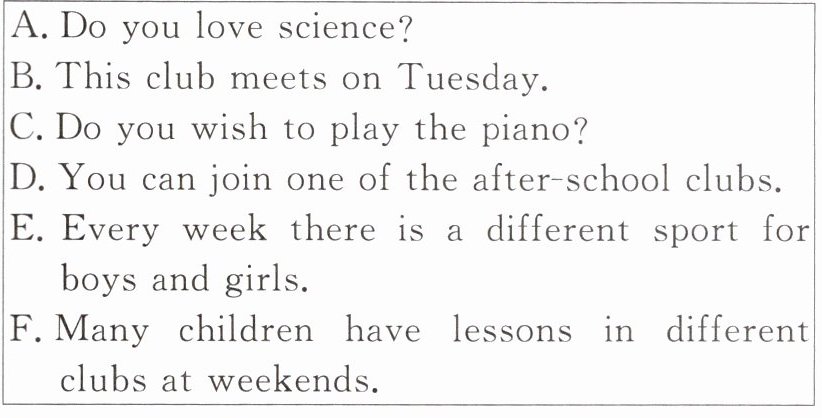 Can you change colours of things? _________31_________ Why not come to the Science Club? _________32_________ Mrs White is the teacher here and she is busy talking about the club on the phone.