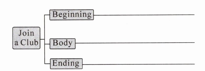 审题指导 1. 应用文 2. 第一人称 3. 一般现在时 4. ①介绍自己并说明想加入的俱乐部 ②申请加入这个俱乐部的原因 ③对加入俱乐部的期望 思路点拨 Beginning: My name, age, ability, and the club I want to join Body: Why I want to join the club Ending: My wish to join the club 小试身手 One possible version: Dear Sir/Madam, I am Wendy from Class Five, Grade Seven. I'm fourteen years old. I'm a quiet girl, but I can read with feeling. So I want to join the reading club. I often go to the school library and read there. I enjoy reading because reading makes a full man. And books can open our mind and make us think. I also like making friends. In the reading club, we can talk about good books and learn from each other. I really hope to join the reading club.