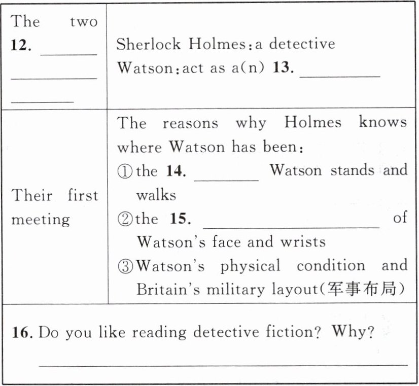 Watson was introduced to Holmes as a doctor. Yet Holmes thought that the way he stood and walked made him seem like a soldier(战士). So, this meant he was probably an army doctor.