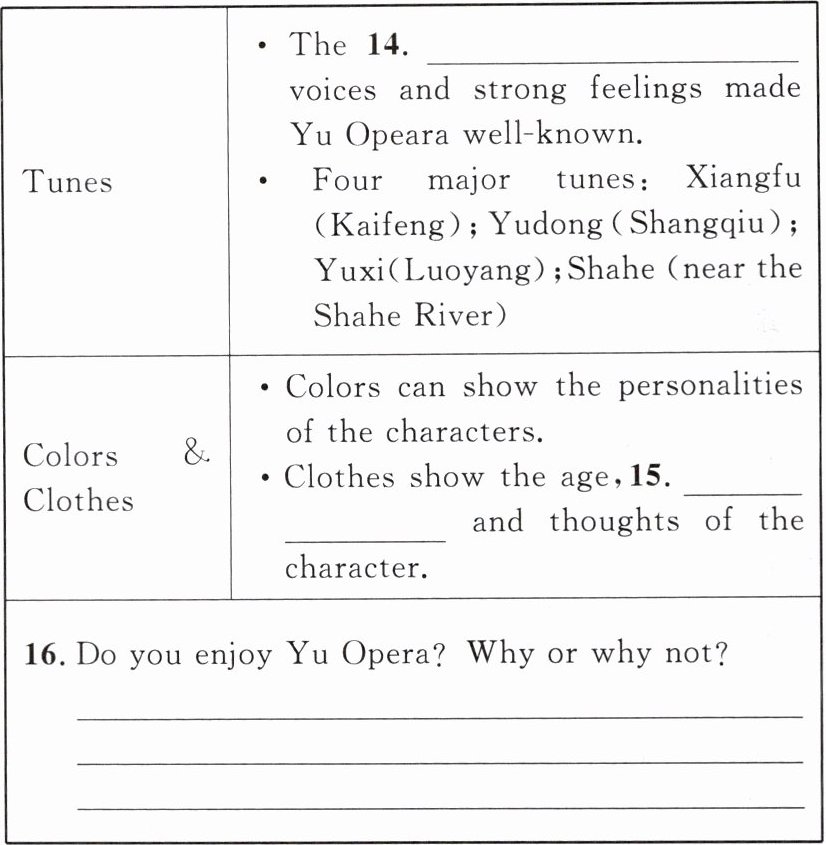 第二节 13. new dramas 14. rising and falling 15. social position 16. Yes,I do. Because I'm interested in traditional Chinese culture./No,I don't. Because it's difficult for me to understand it./...