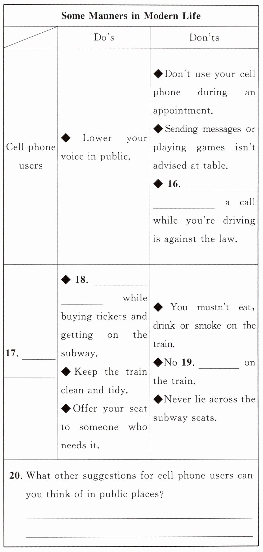 Do you often use a cell phone? Do you take the subway to school every day? These things make our modern life easier. But do you know how we should behave properly while using the cell phone or taking the subway? The following suggestions might be helpful.