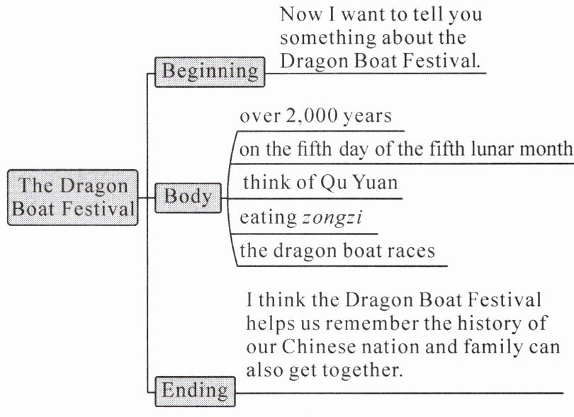 4. 写作要点:①端午节的时间和历史;②人们的庆祝活动;③这个节日的意义