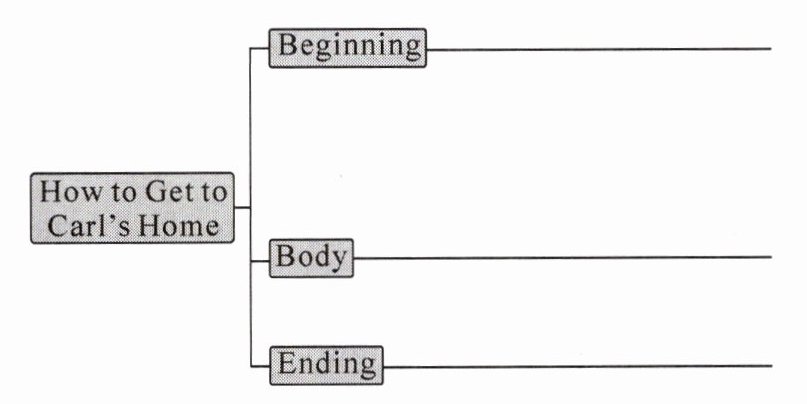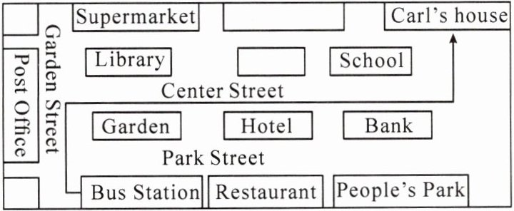 假如你是 Carl,你的笔友 Lisa 下周五要来你所在的城市旅游并且想去你家参观。请根据下图写一封信告诉她如何从公共汽车站到你家。词数:100 左右。