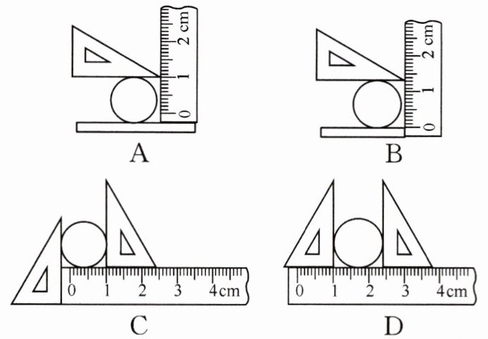1. 如图所示为测量硬币直径的几种方法,其中正确的是(