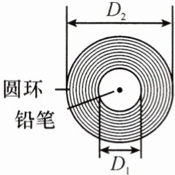 3. 一条纸带厚薄均匀,若把纸带紧密地环绕在圆柱形铅笔上,恰好能套进一个圆环内。如图所示,纸带在铅笔上环绕了n圈,则纸带厚度是