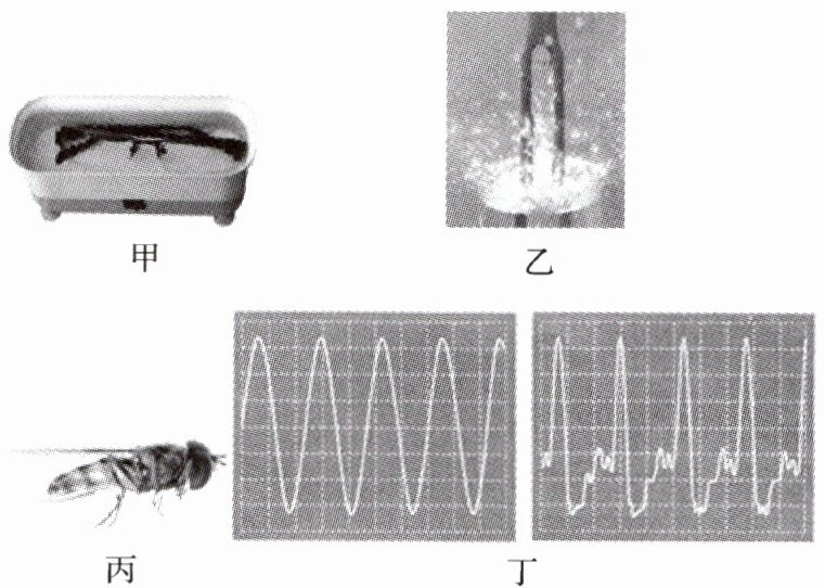 B.乙图中,发声的音叉激起水花说明声音的音调是由振动的频率决定