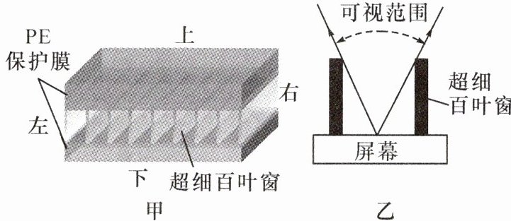 11. 如图甲为手机防窥膜结构图,贴在手机屏幕上的效果如图乙,只有正对着手机屏幕的使用者才能看清楚屏幕上的内容,其他人从旁边望过去,只能看到一片漆黑,是由于光