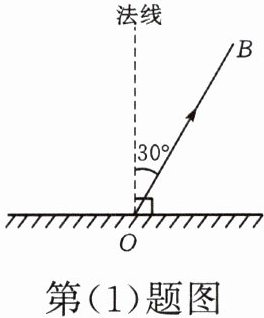 4. (1)如图,根据给出的反射光线 OB 画出入射光线 AO,并标出入射角的度数。