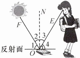 2. 如图,人之所以能看见不发光的课本,是由于课本反射的太阳光进入我们的眼睛。对于图中的描述,下列说法中正确的是(