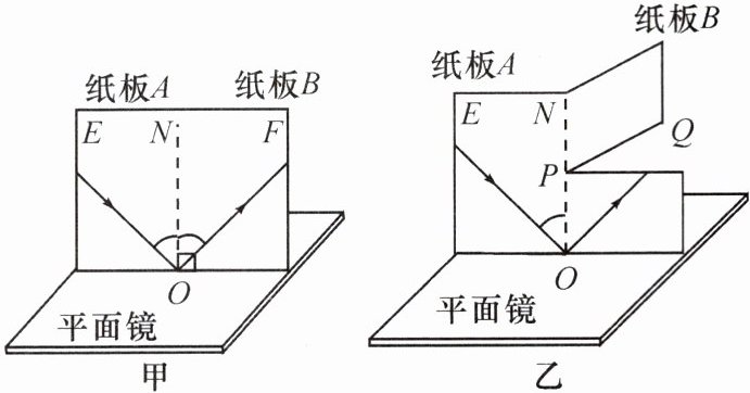 (5)将纸板 B 沿 PQ 剪开,把纸板 B 的上半部分向后折,如图乙所示,可看到纸板 B 的下半部分有反射光,上半部分无反射光,此现象表明:反射光线、入射光线和法线