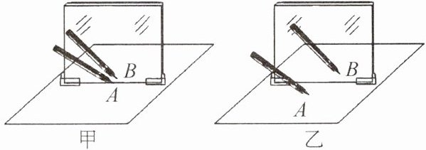 (2) 如图乙所示,让中性笔A离开玻璃板一小段距离,在玻璃板后移动中性笔B,直至B与A的像完全重合,这样做既可以