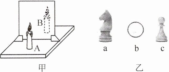 8. 用图甲中的器材探究平面镜成像的特点时,发现不容易得到像和物左右之间的关系。为解决这一问题,应选用图乙中的
