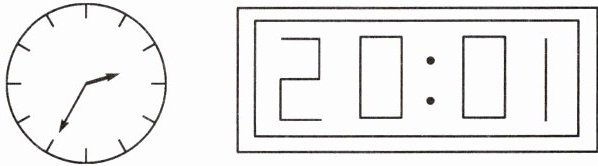13. 小明从平面镜里看到镜子对面石英挂钟和电子钟所成的像如图所示,这时石英挂钟和电子钟显示的时间分别是